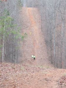MF: The course was unlike any trail I could have imagined. We trained on trails that got beat up on the play ground. There was one hill/mountain that had me on all 4’s trying to get to the top… Yes, it was that steep! This course was mean!